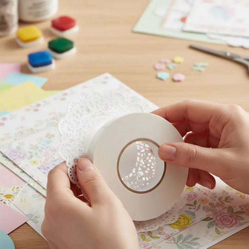 Cinta Transferible Blanca 18mm X 40m Adhesivo Doble Contacto Blanco